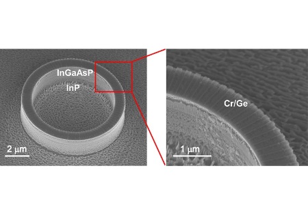 Zhang, Feng and the other members of the team were able to exploit the phenomenon of thresholdless PT symmetry breaking through the fabrication of a unique microring laser cavity. This cavity consists of bilayered structures of chromium/germanium arranged periodically in the azimuthal direction on top of a microring resonator made from an indium-gallium-arsenide-phosphide compound on a substrate of indium phosphide. The diameter of the microring is 9 micrometers.