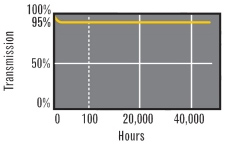 Leading the Way in Long-Term PerformanceFor long-term performance, PowerLightGuide all silica fiber optic bundles, fused-end bundles, and assemblies set the standard. Tested for well over 40,000 continuous, unfiltered hours, our PowerLightGuide bundles exhibit level, steady transmission at 95% of the original input!