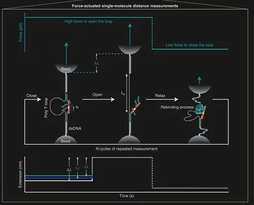 Force actuated single-molecule distance measurement principle (Source: Nature Nanotechnology)