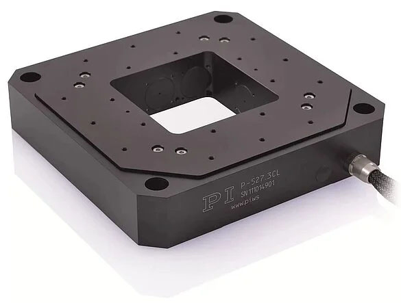 The P-527 multi-axis piezo nanopositioning stage provides 200µm travel in X and Y and 20µm in Z. The maximum resolution is 0.1 nanometer in Z and 0.5 nanometer in both X and Y. The flexure guided design with direct-metrology position feedback provides backlash-free motion with very high dynamics, linearity, and position stability.