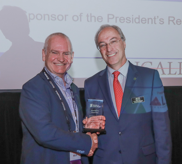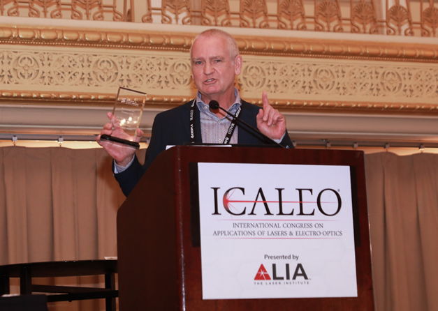 In the photo below, we see Michel Giroux, President and CEO of Gentec Electro-Optics, receiving the Award by the Laser Institute of America during ICALEO 2023 in Chicago.