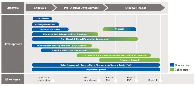 Also included are GLP ADME studies to understand in vivo metabolism and routes of excretion, and reproductive, chronic toxicity and carcinogenicity studies to support longer duration clinical trials to market.