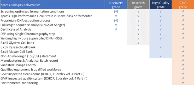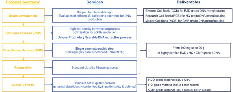 Plasmid DNA manufacturing using a unique process for Research, HQ and GMP grades