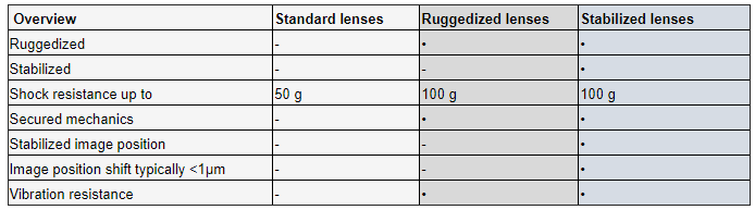 By using ruggedized lenses from Schneider-Kreuznach, customers can benefit from longer lifetime, higher reliability and lower maintenance costs. So the lenses offer higher quality and better performance in demanding environments.