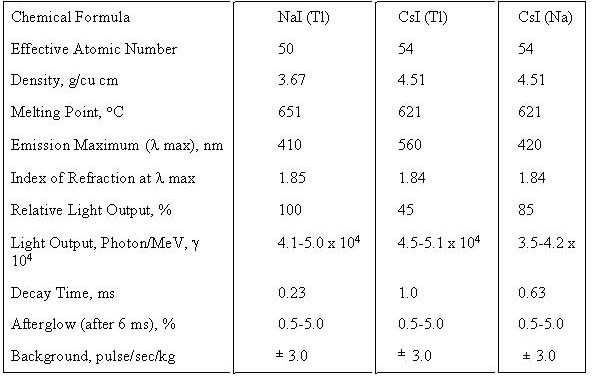 NaI (Tl), CsI (Tl) and CsI (Na)are the best scintillation crystals for use in detectors of ionizing radiation such as gamma-rays, x-rays, alpha and beta particles.![]()