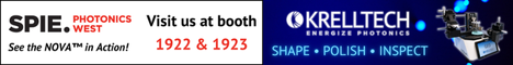| The NOVA™ polishing system will be in action at Photonics West | Visit KrellTech at booths 1922 & 1923 to see precision systems designed to shape, polish, and inspect photonic components with repeatable, production-ready results. KrellTech manufactures advanced polishing systems for bare fiber, connectors, PICs/waveguides, medical probes, and more. Our innovative systems integrate polishing with in-line inspection, providing immediate feedback, reduced handling, and increased throughput. Flexible, configurable, and automated platforms support both R&D and high-volume production. |